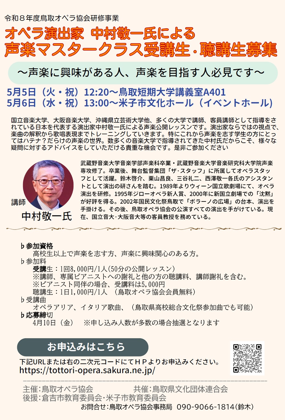 ◆令和7年度鳥取オペラ協会公演事業を開催します!